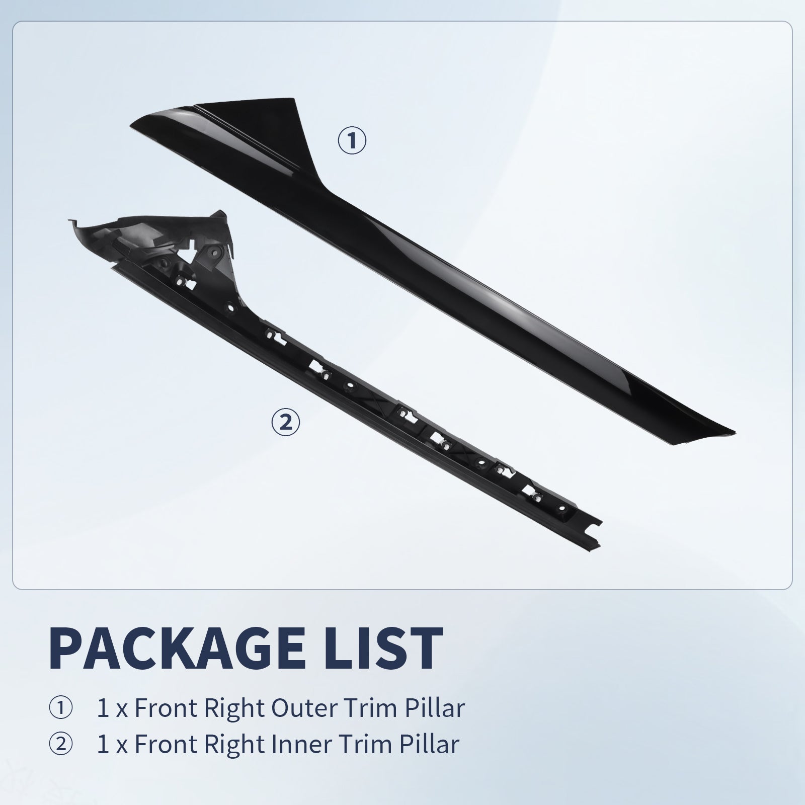 - Complete Passenger Side Set: Includes both outer and inner A-pillar trim moldings for right side