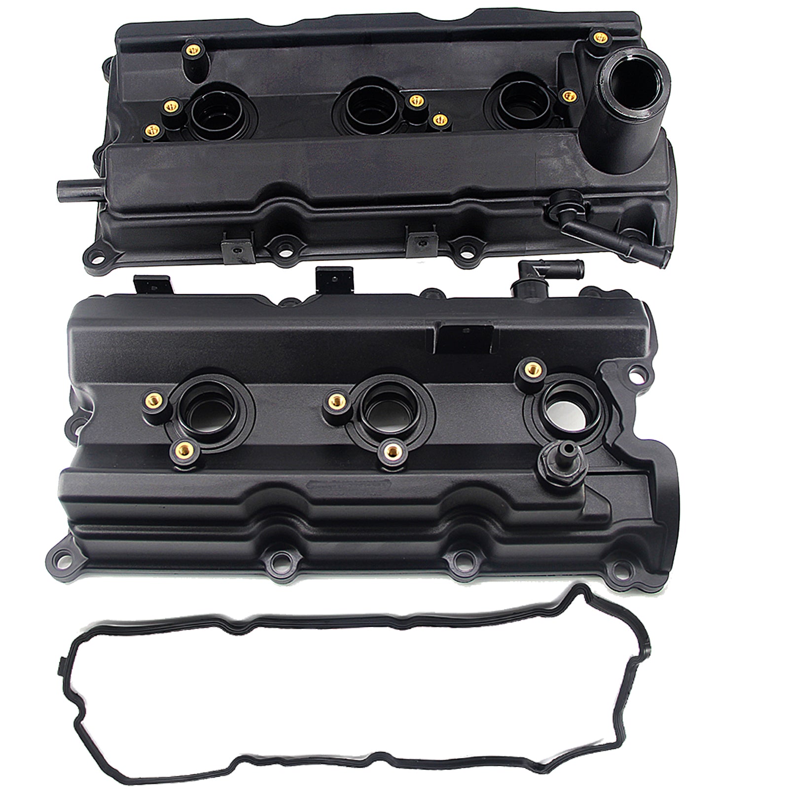 This set of engine valve covers is designed to be a reliable replacement for worn or damaged covers on a variety of Nissan and Infiniti models, including the 350Z (2003-2009), FX35 (2003), G35 (2003-2008), and M35 (2003-2008, 2006-2010). The covers are specifically engineered for the right and left sides of the engine, ensuring proper operation and performance. This durable and compatible set is a practical solution for maintaining the integrity of your vehicle's engine.