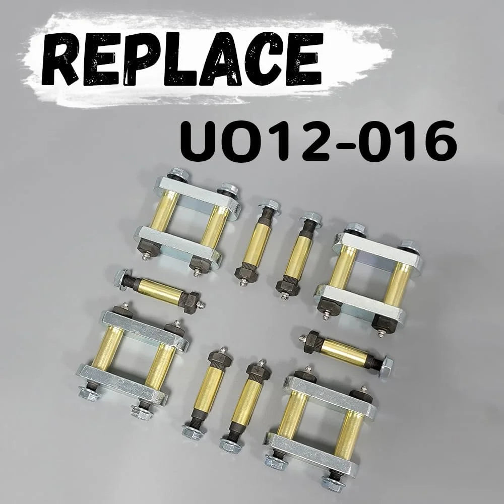 The FEXON Heavy Duty Trailer Shackle Kit is designed to enhance the strength and durability of your trailer's suspension system. This kit is specifically compatible with CRE3000 Stock Equaflex 2.25" shackles, making it a perfect upgrade for leaf spring tandem axle trucks and trailers. The kit includes high-quality shackle links that are engineered to withstand heavy loads and provide a smooth ride. With its robust construction and precise fit, this shackle kit ensures a secure and reliable connection between your trailer's axles and frame, with the UO12-016 part number for easy identification and installation.
