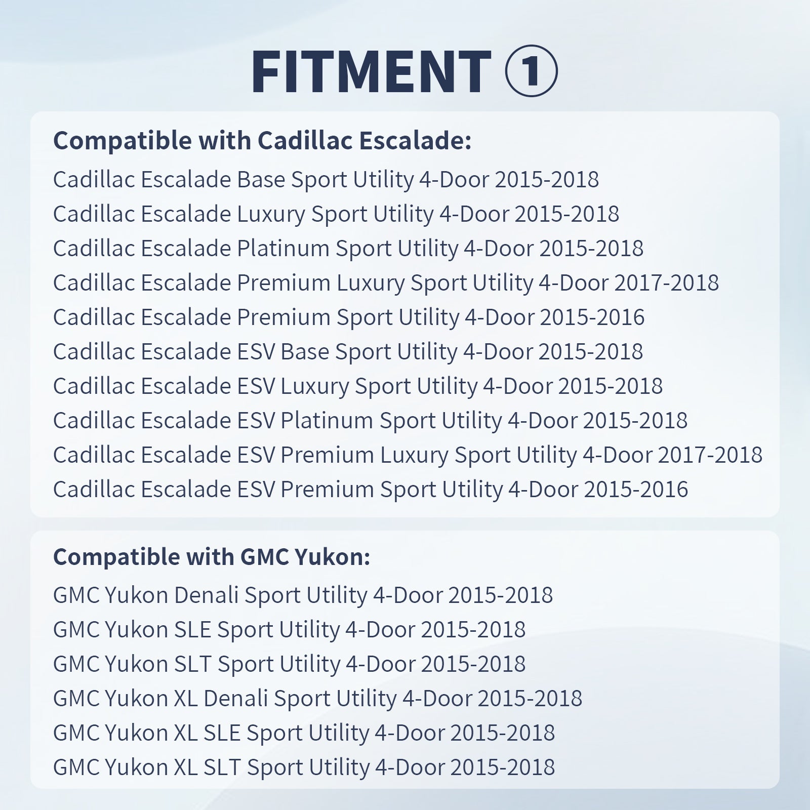 This high-quality B pillar door trim molding is a perfect replacement for your Cadillac Escalade ESV, Cadillac Escalade, Chevrolet Suburban, Chevy Tahoe, or GMC Yukon XL from 2015 to 2020, as well as the Suburban 3500 HD from 2016 to 2020. Made of durable ABS plastic in a sleek gloss black finish, this easy-to-install molding will restore the look of your vehicle's exterior with a high-grade crystal paint protective film. Backed by a 1-year customer service period, this replacement part is a reliable and long-lasting solution for your vehicle's needs.