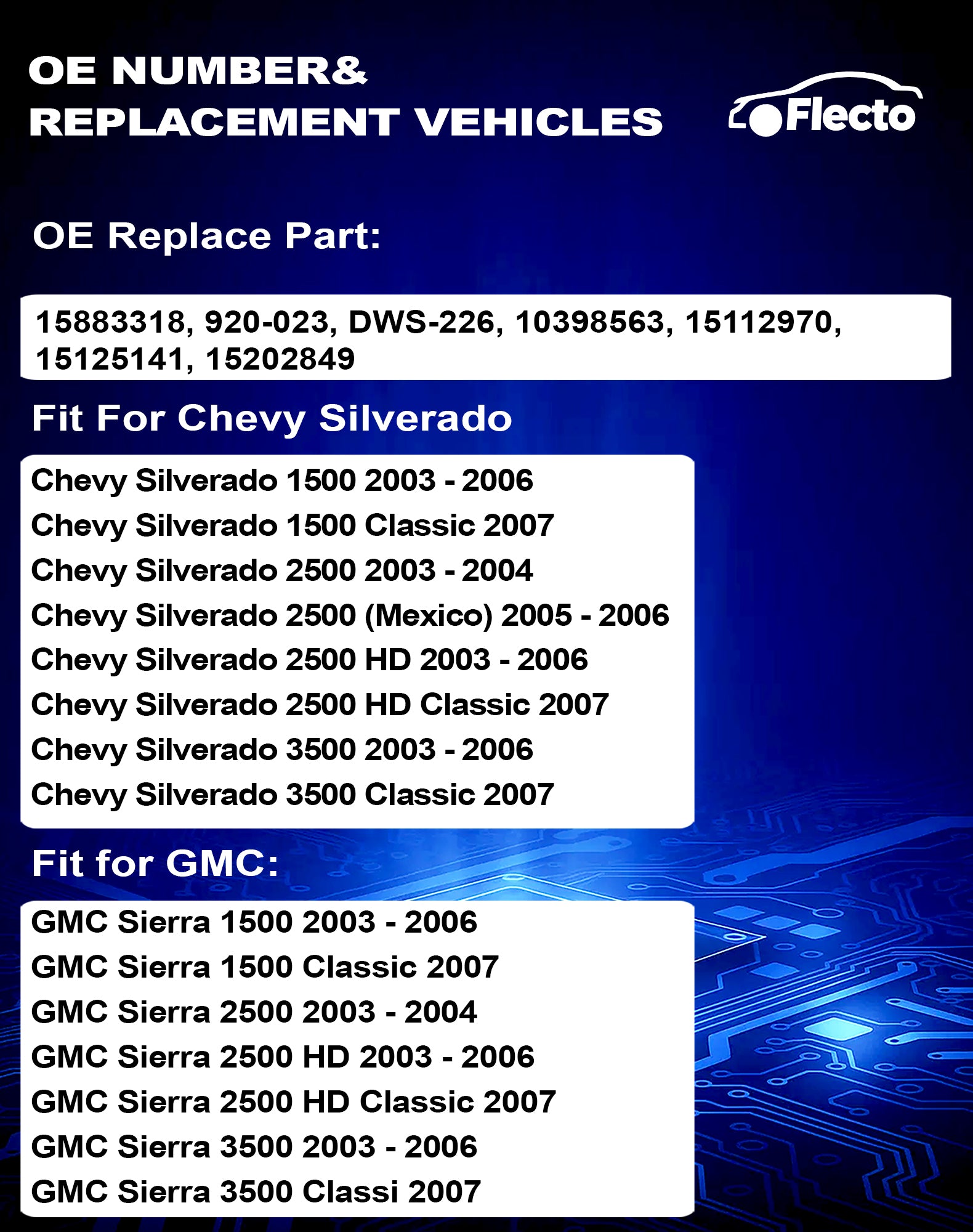 Restore full control over your vehicle's window operations with this direct-fit power window switch for 2003-2007 Chevy Silverado and GMC Sierra trucks. Compatible across 1500, 2500, and 3500 models, this driver-side switch (part #15883318 920-023 DWS-226 10398563 15112970 15202849) serves as a reliable replacement for OEM part numbers DWS-226 and 920-023. Designed to seamlessly integrate with your truck's existing electrical system, this switch restores the smooth operation of your power windows. The switch mounts on the driver's side door panel, providing convenient access to window controls. Installation is straightforward with the direct-fit design matching your vehicle's specifications. This replacement switch helps you regain the functionality of your power windows, eliminating the frustration of manual operation or malfunctioning controls. Perfect for DIY repairs or professional installations, this switch is an essential component for maintaining your truck's electrical system.