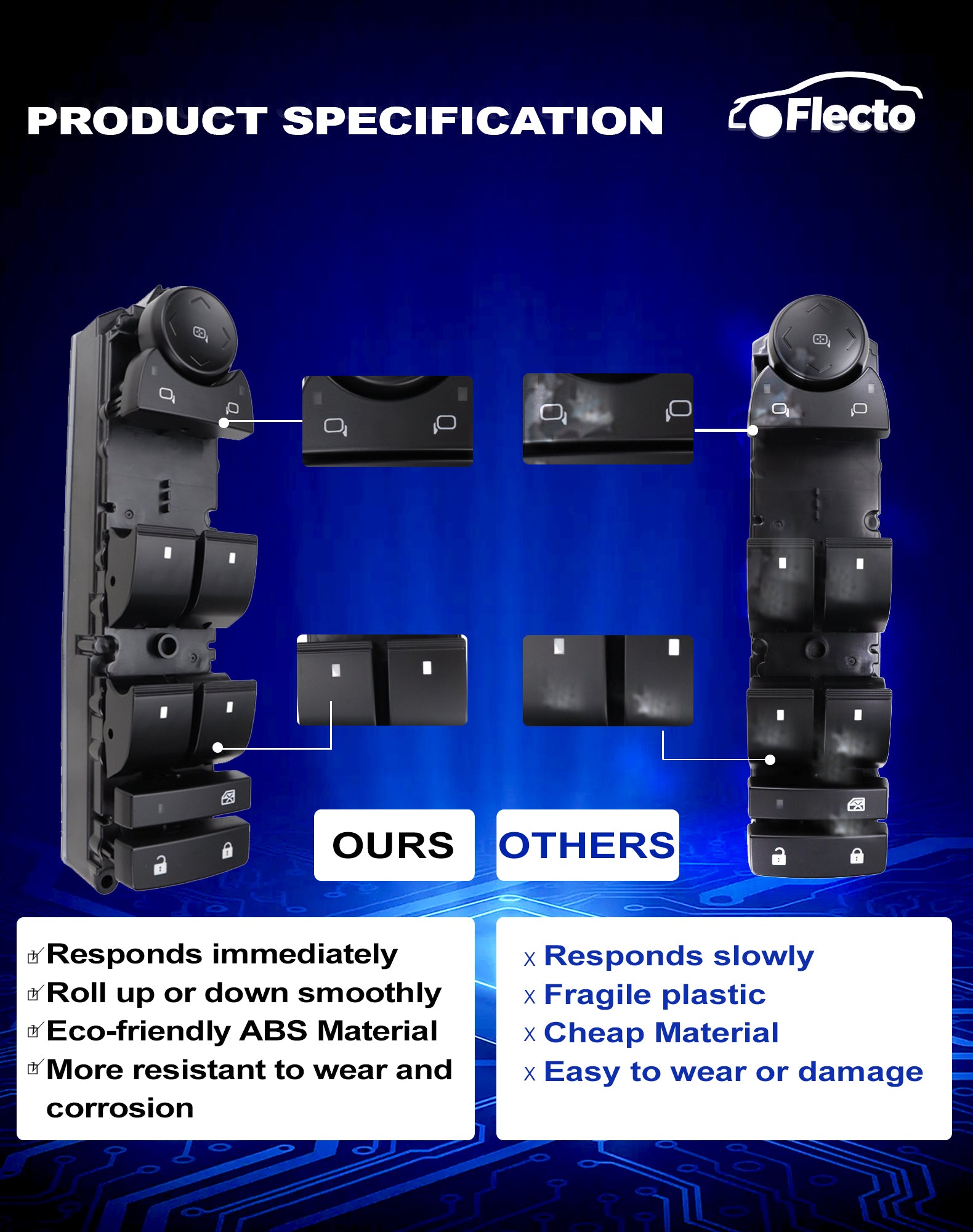 Flecto Power Window Switch Compatible with 2007?¡§C2021 Chevy Silverado, GMC Sierra, Tahoe, Suburban, Escalade ?¡§C Driver Side Master Window Control ?¡§C Replaces 20835552, 15093439, 20877335