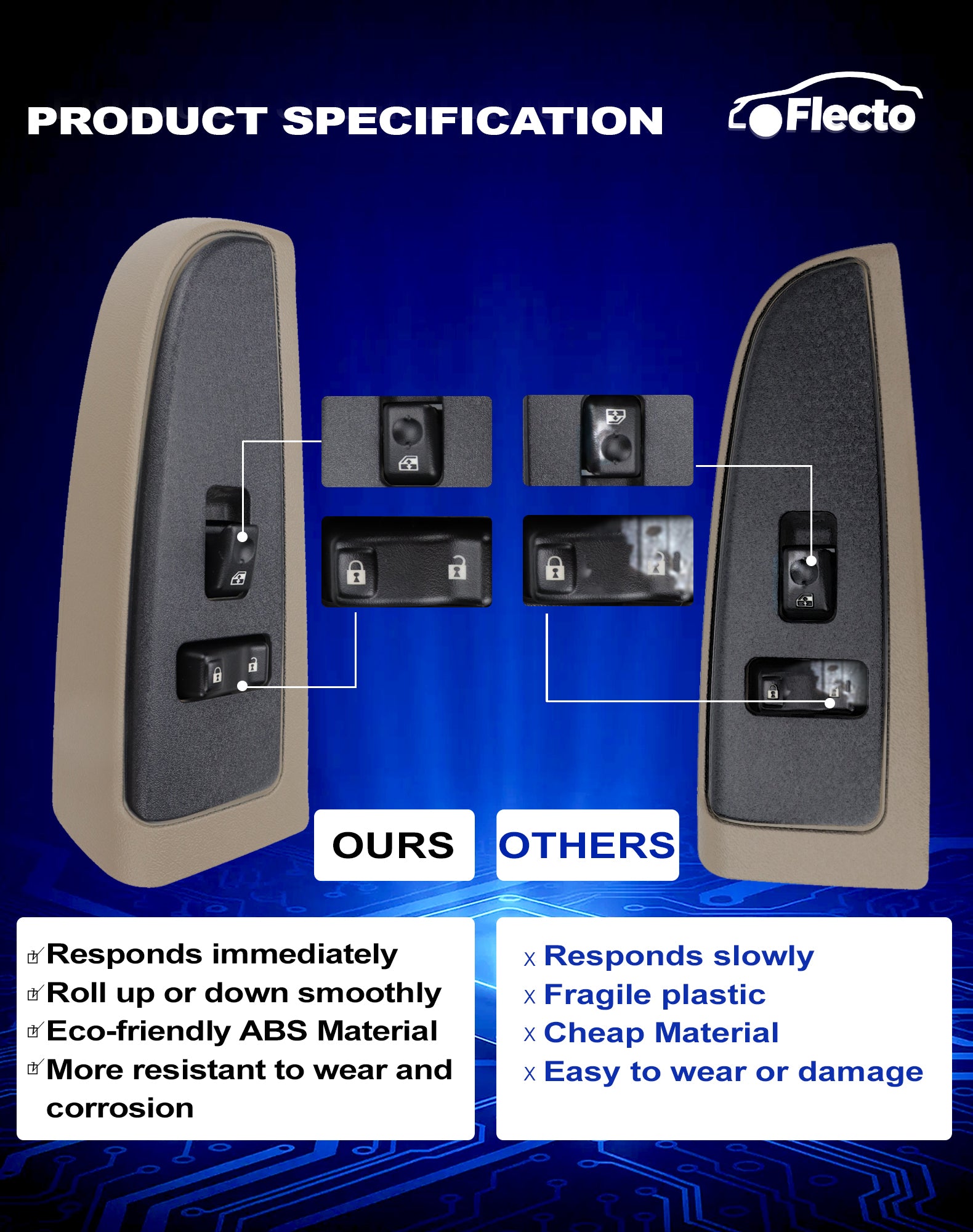Flecto Power Window Switch Front Passenger Side 19115820 with Door Lock & Tan Bezel Compatible with 03-07 Chevy Avalanche Silverado Suburban Tahoe GMC Yukon Sierra Cadillac Escalade, Replace 920-020