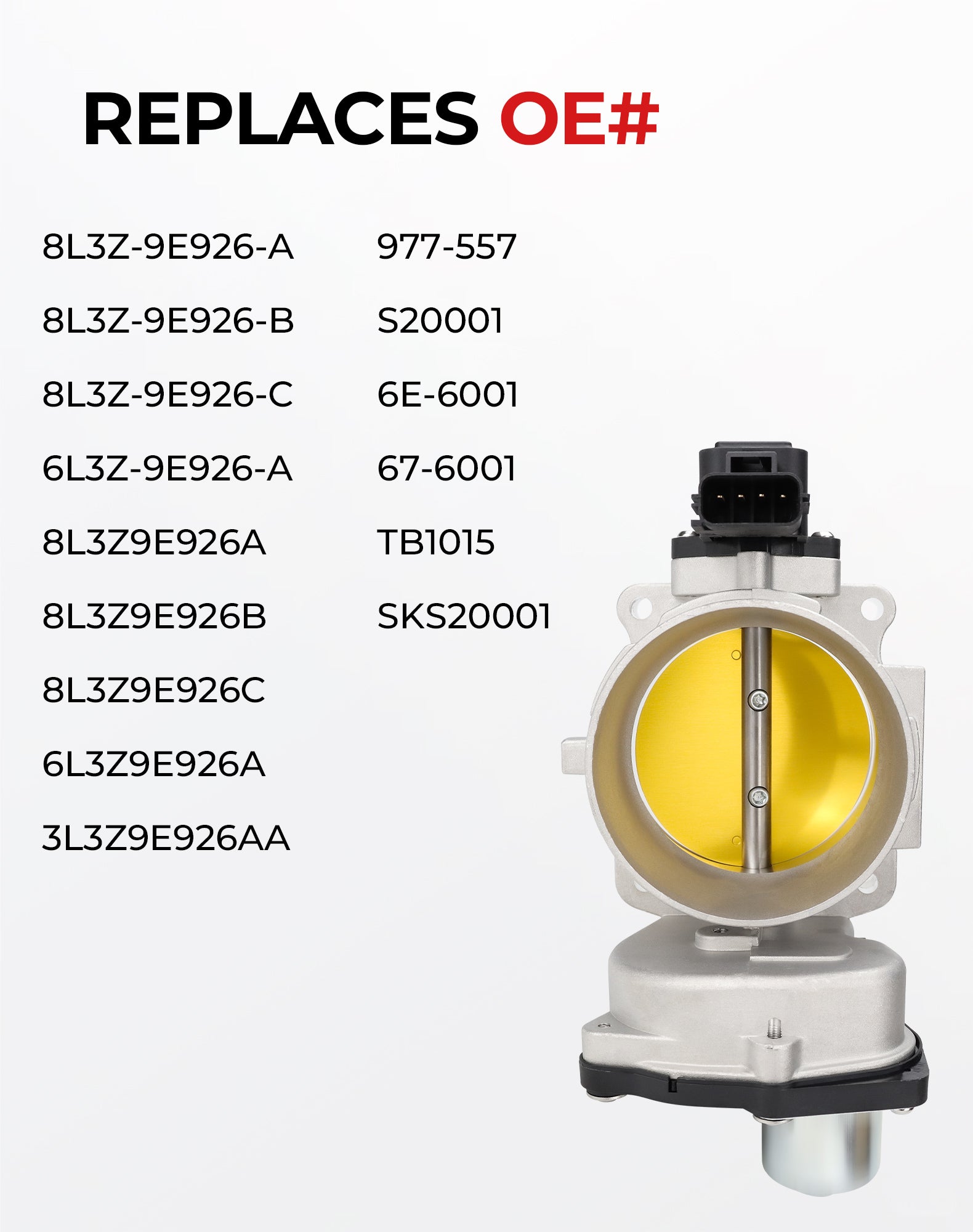 Replaces OEM Part Numbers: S20001, 6L3Z9E926A, 8L3Z-9E926-A