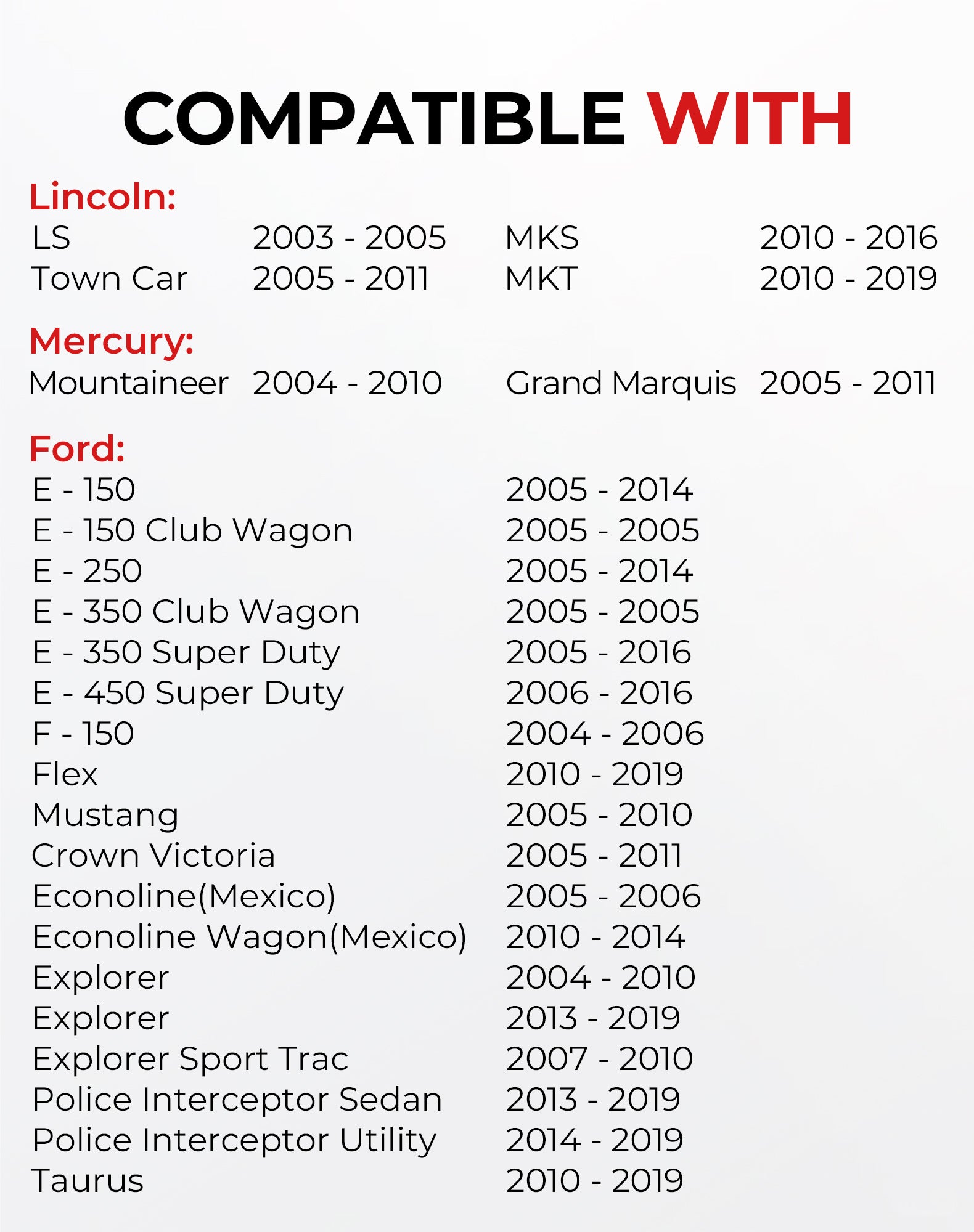 Engine Compatibility: 4.0L V6, 4.6L V8, 5.4L V8 engines