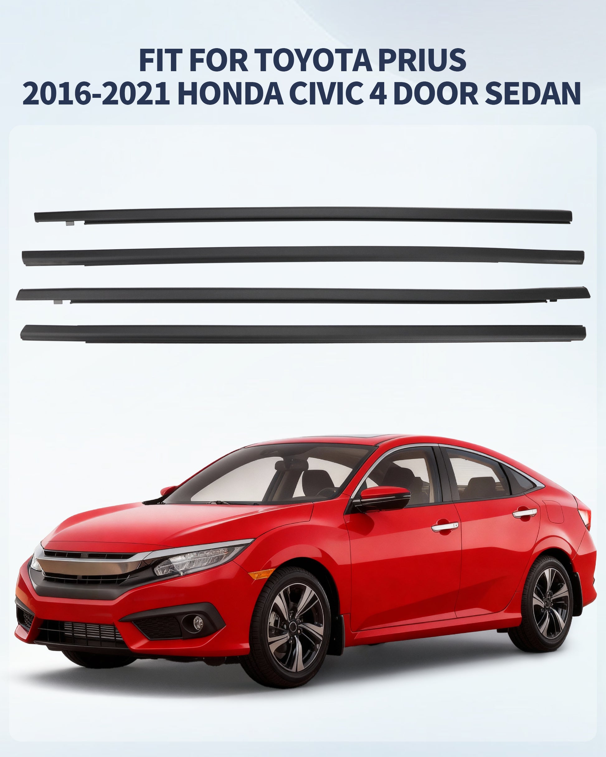 AIKEPT Window Weather Stripping Seal Belt, Complete Set of 4, Compatible with Honda Civic 4-Door Sedan 2016-2021, Replaces 72410-TEA-T01 & 72450-TEA-T01