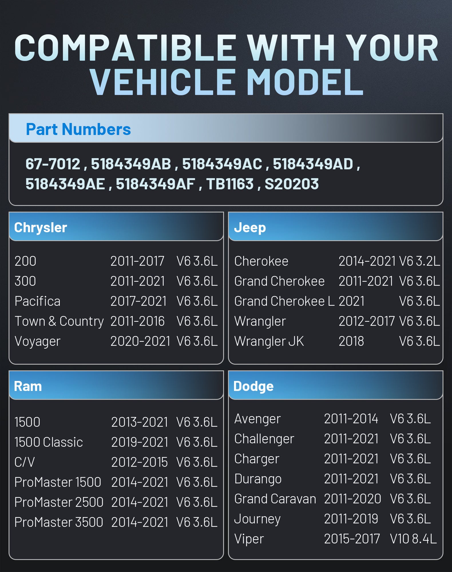 Engine Compatibility: 3.6L Pentastar V6 engines