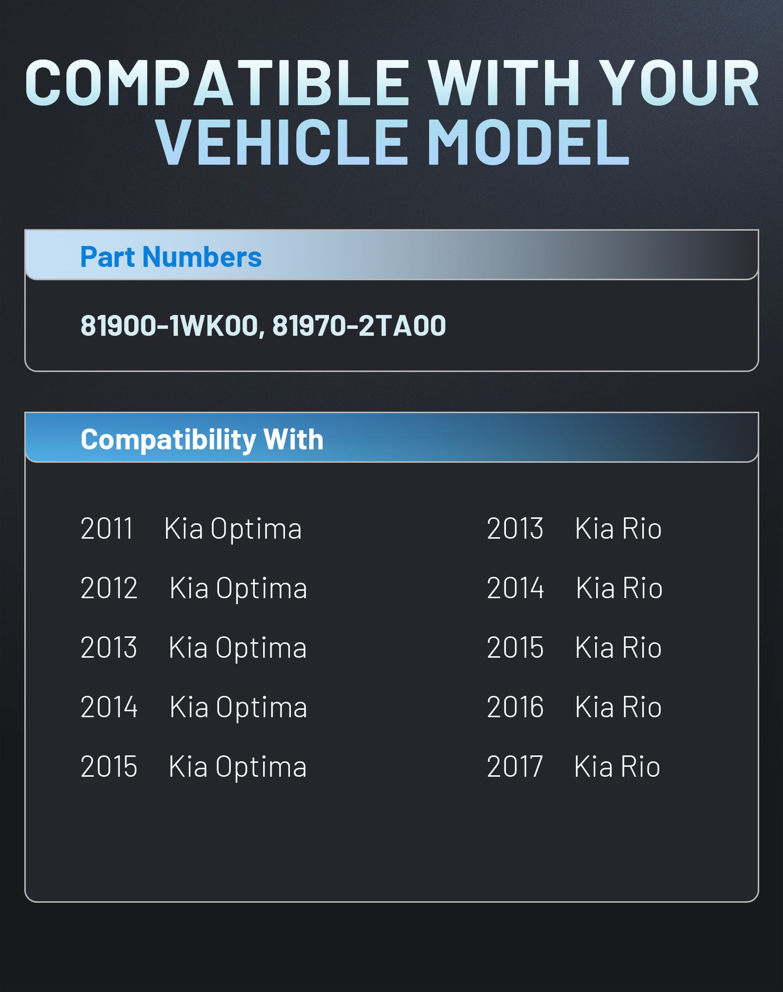 Replaces OEM Part Numbers: 81900-1WK00, 81970-2TA00