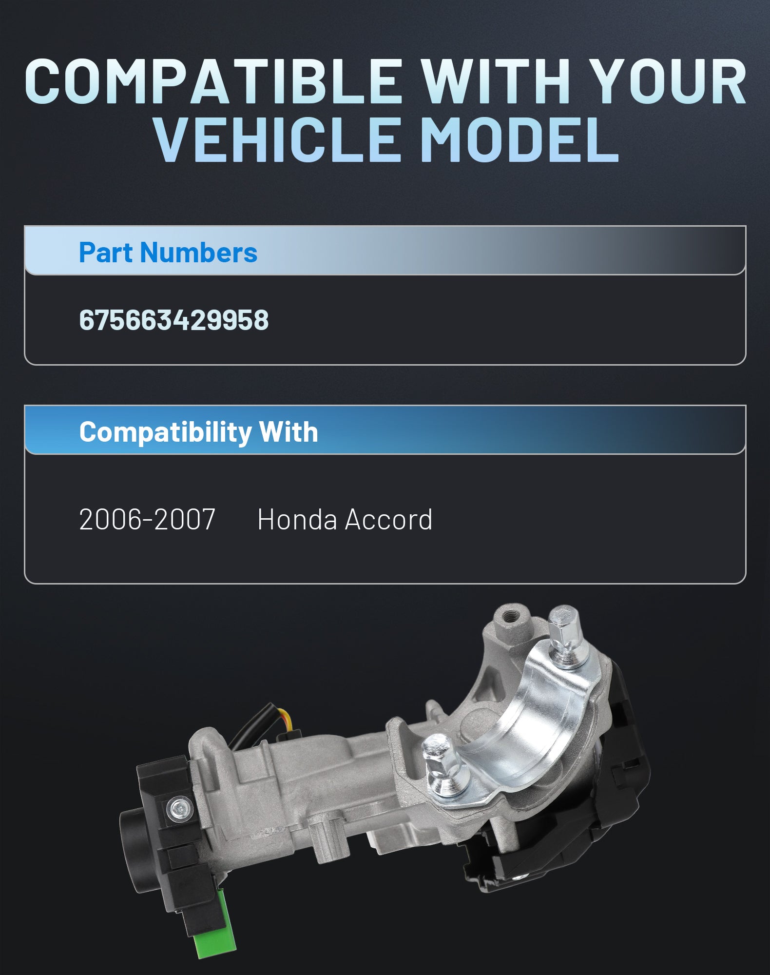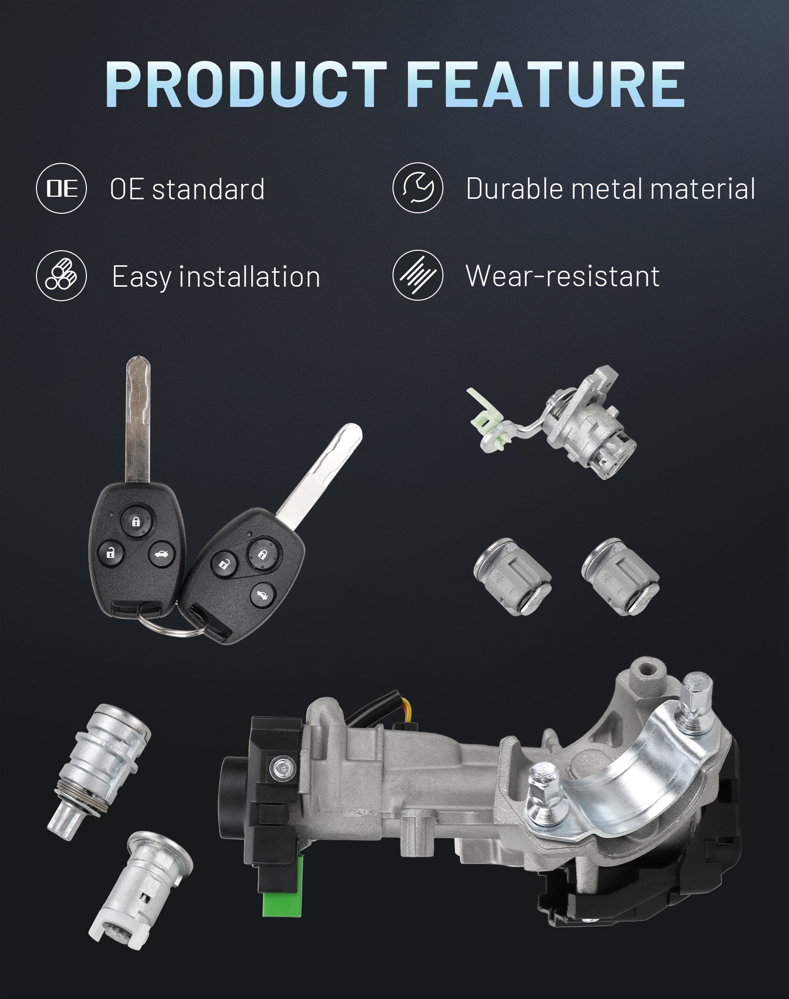 Restore your Honda Accord's complete security system with this comprehensive lock cylinder set. Designed as a direct OEM replacement, this complete kit includes ignition lock, door lock, glove box lock, fuel cap lock, handrail box lock, emergency lock, and 2 transponder keys with 8E chips for complete vehicle security.