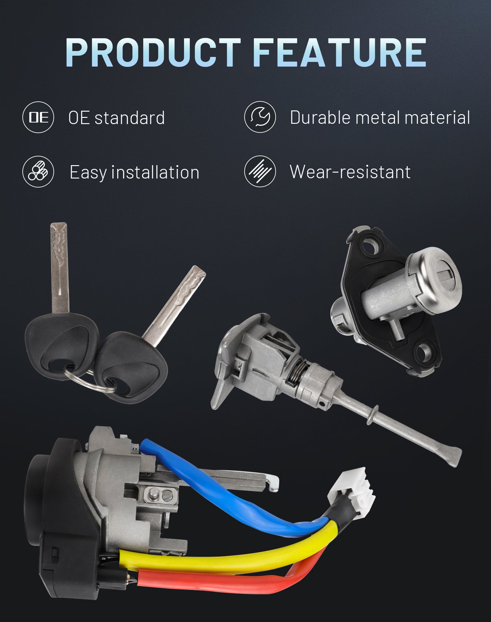 Package Included: Ignition Switch x 1, Trunk Lock x 1, Front Left Door Lock x 1, Universal Keys x 2