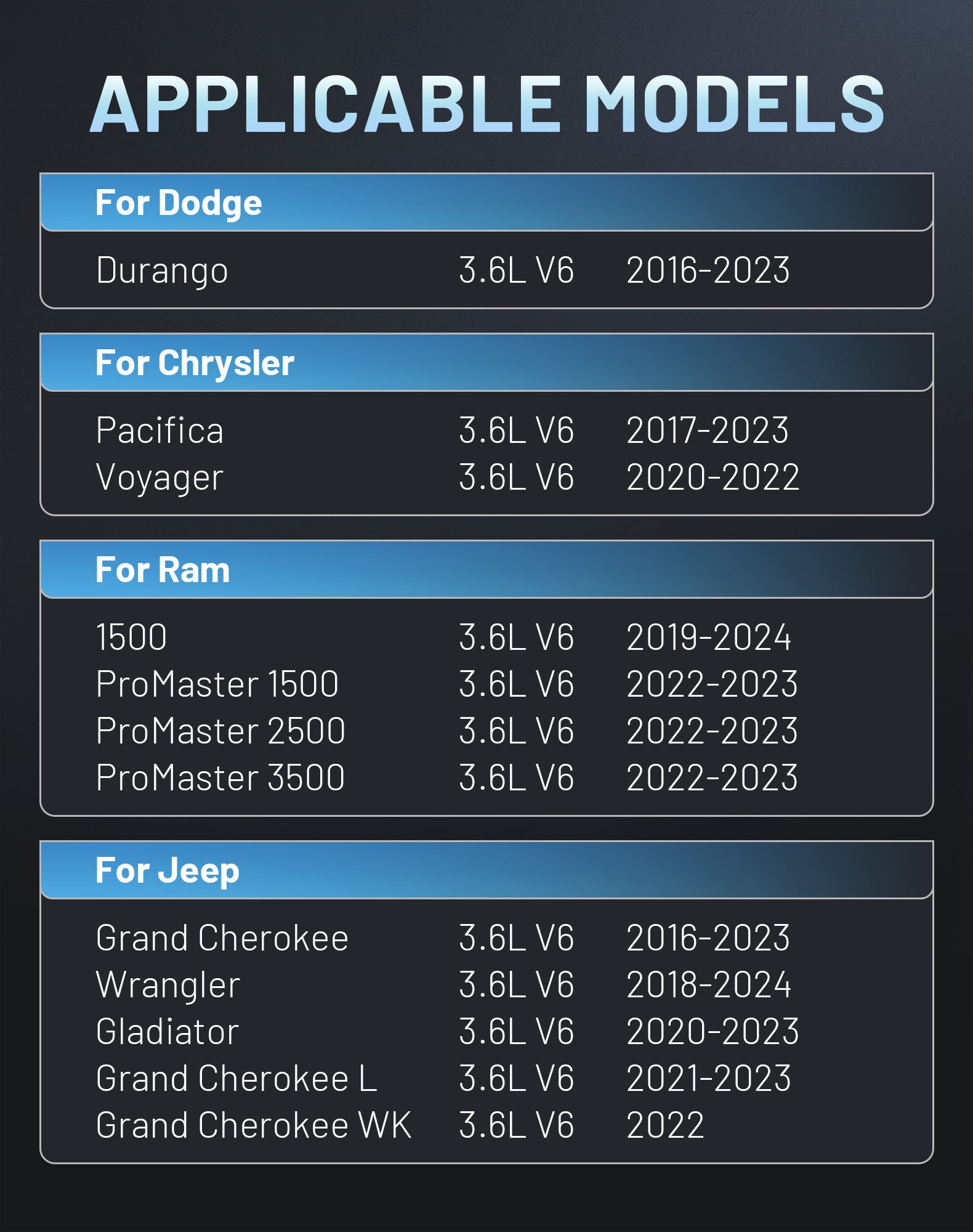 For Jeep Wrangler 3.6L V6 2018-2024For Jeep Gladiator 3.6L V6 2020-2023