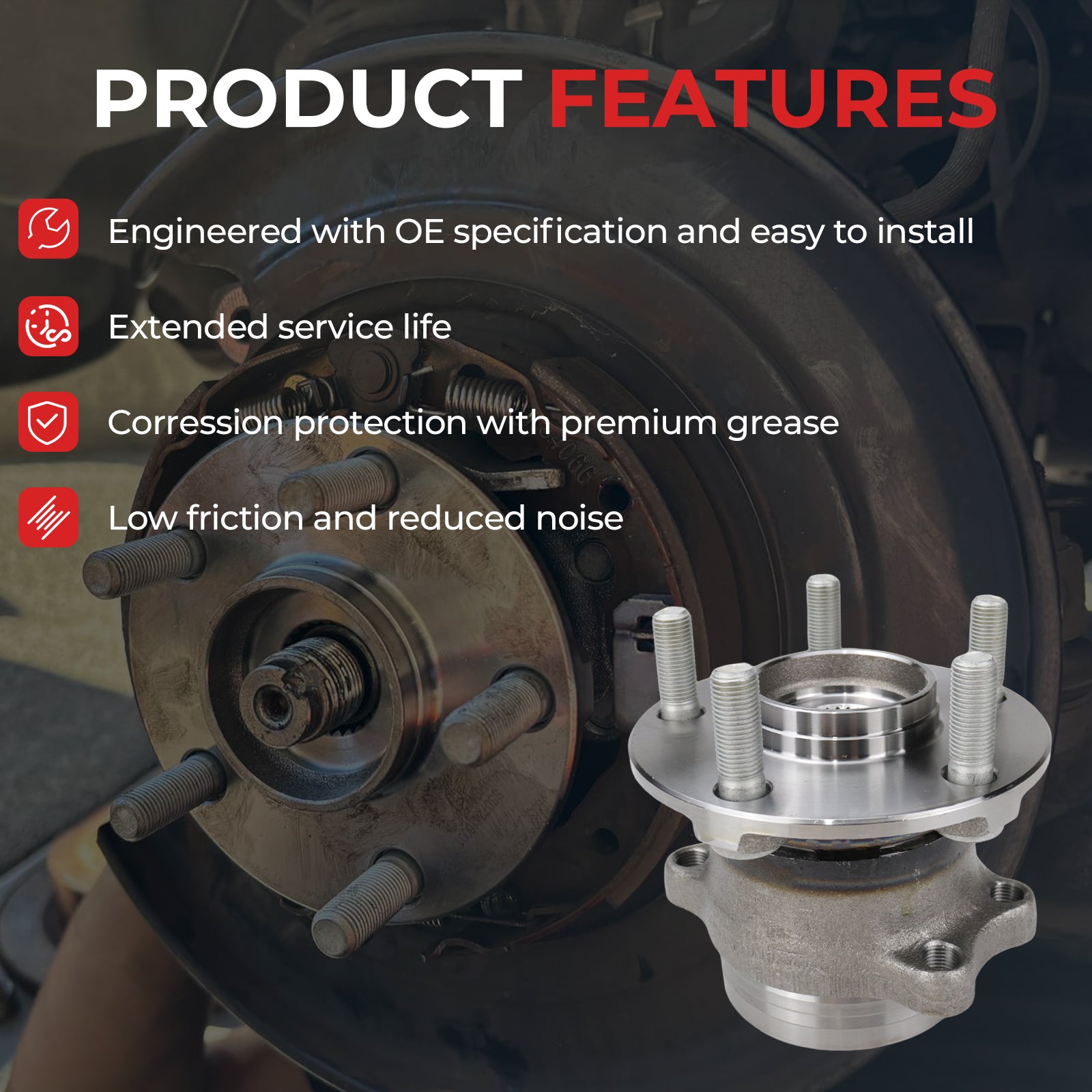 - Complete Assembly: Includes wheel bearing, hub, and ABS sensor ring for comprehensive replacement